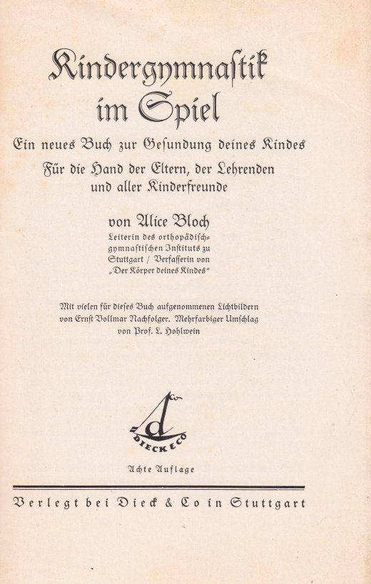 Alice Bloch schreibt in diesem Buch über die Kindergymnastik, vorallem darüber, dass diese spielerisch erfolgen soll, ab von den bisher starren Mustern des Schulsports, welcher mehr den Pflichtübungen entspricht und den Kindern nicht gerade sehr viel Spaß bereitet. Zahlreiche Bilder dokumentieren die einzelnen Übungen sehr anschaulich.
