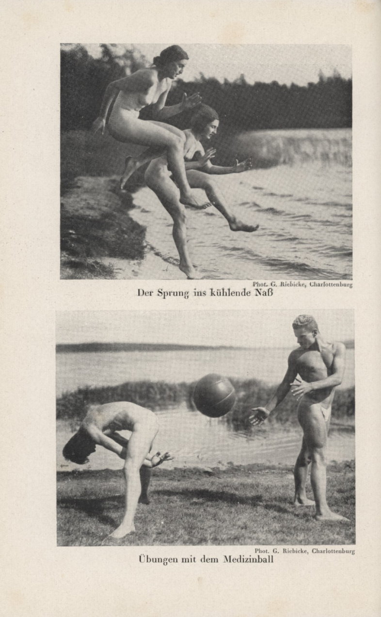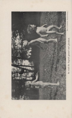 Mein Freiluftbuch beschäftigt sich mehr mit den gymnastischen und spielerischen Übungen in der Natur, deren positive gesundheitliche Wirkung sich erst richtig mit dem Wegfall der einengenden Kleidung entfalten kann.