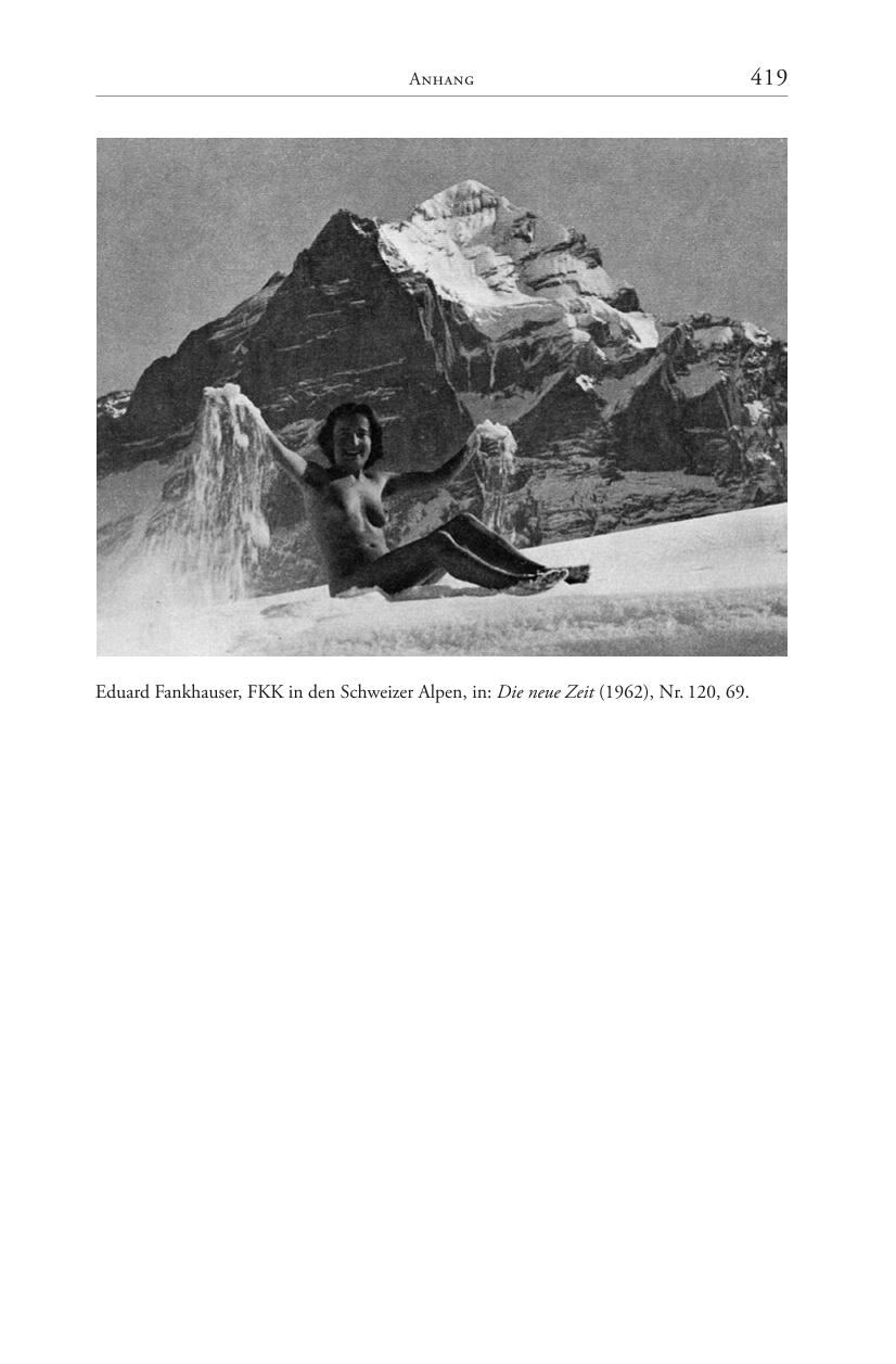 Eva Locher beschreibt die Entwicklung der Lebensreform in der Schweiz nach 1945, wobei die Schwerpunkte in der Ernährungsreform, Naturheilkunde und der Freikörperkultur liegen, allen voran die Schweizer FKK-Pioniere Eduard Fankhauser und seine Frau Christine Fankhauser mit dem Verein und Gelände „Die neue Zeit”.