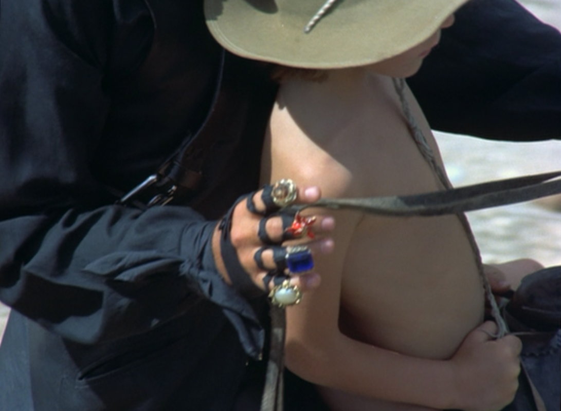 Westernkennern wird dabei auffallen, dass die Jacke des Beinlosen und die Hose des Armlosen einem Kostüm von John Wayne nachempfunden ist.