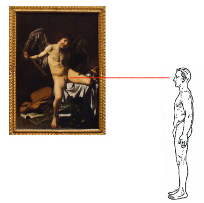 Wer schon einmal vor diesem Bild stand, dem ist mit Sicherheit die detailgetreue Arbeit von Caravaggio aufgefallen. Fast lebensgroß befindet sich der nackte Amor, dieser nackte Junge, vor dem Betrachter, in dessen Augenhöhe sich genau das Geschlechtsteil befindet.
