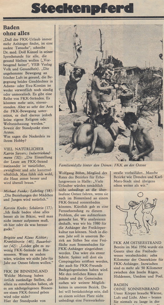 Freikörperkultur in der Presse NBI - Neue Berliner IllustrierteDDRHeft 31 - 1978 Interessanter Artikel über die Entwicklung, Ziele und Planungen (Stand → 1978) der Freikörperkultur an den Ostsee-Stränden und Binnen-Seen.