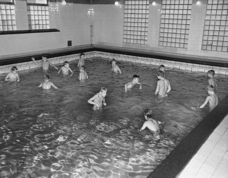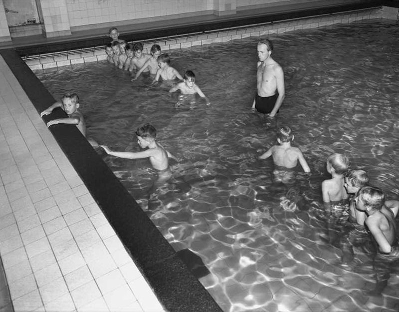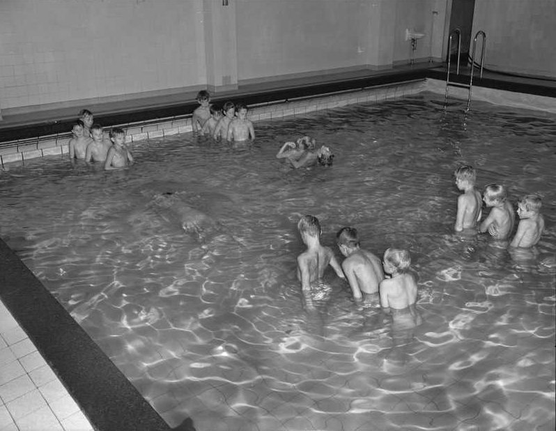 1950 — In der Ruseløkka Schule in Oslo (im Stadtteil Frogner) fand bis in die späten 1950er Jahre der Schwimmunterricht für die Jungen auch nur nackt statt (Lehrpersonal in Badebekleidung).