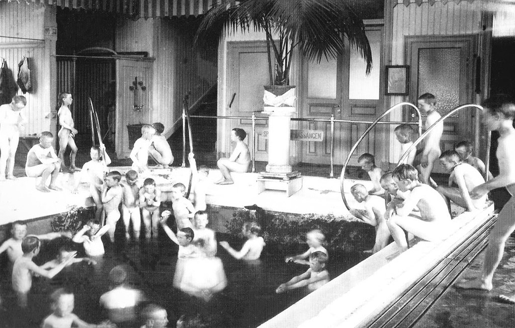 1908 in Kalmar (Süd-Schweden) - der Schwimmunterricht fand nur für die Jungen statt, natürlich nackt. Mädchen „brauchten” allgemein nicht schwimmen zu können, folglich dann auch nicht zu lernen. Die Mädchen wurden während dieser Zeit dann in Haushaltsaufgaben unterrichtet. In größeren Städten war es vom Schulgesetz auch vorgeschrieben, dass Jungen und Mädchen getrennt voneinander unterrichtet wurden. In ländlicheren Gebieten war dies jedoch nicht immer durchführbar.