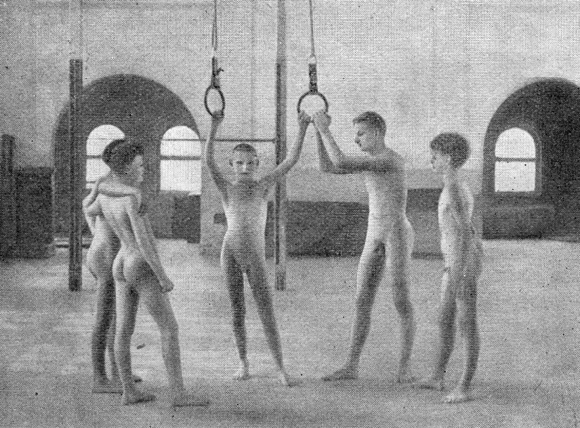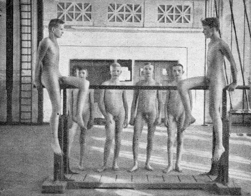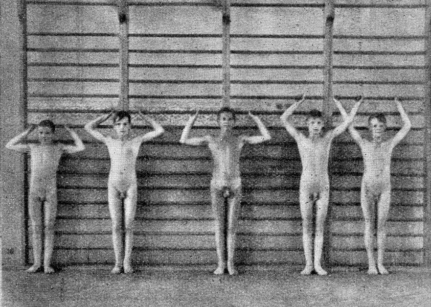 Im Turnunterricht sollte so oft als möglich jede Kleidung weggelassen, die Nacktheit zu einer Selbstverständlichkeit werden, damit der Turnlehrer die ihm anvertrauten Körper genau beobachten kann.