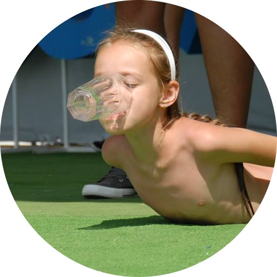 Hört sich leicht an - ist es aber nicht. Ziel dieses Spieles ist es, ein mit Wasser gefülltes Glas (oder Becher einfacher) ohne Zuhilfenahme der Hände - und auf dem Bauch liegend - vollständig auszutrinken. Die Schwierigkeit liegt darin, dass je weniger Wasser sich in dem Glas befindet, man sich umso mehr verrenken muss - was für die Zuschauer durchaus recht belustigend sein kann. Natürlich darf auch nicht zu viel Wasser nebenbei laufen.