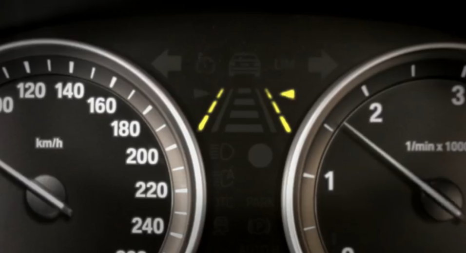 Hin und wieder ist man mit dem Kopf, bzw. „mit den Gedanken nicht immer voll bei der Sache”, man ist abgelenkt und achtet nicht auf die Strasse, nicht auf die Spur – mit drastischen Folgen. Auf langen und ermüdenden Fahrten warnt das »Lane Departure Warning System«, also das Spurhaltesystem, von BMW beim Verlassen der Spur.