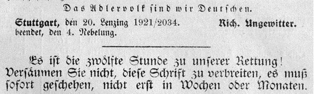 Verfasst hatte Ungewitter diese Hetzschrift bereits am 4. Nebelung 1920 ③.