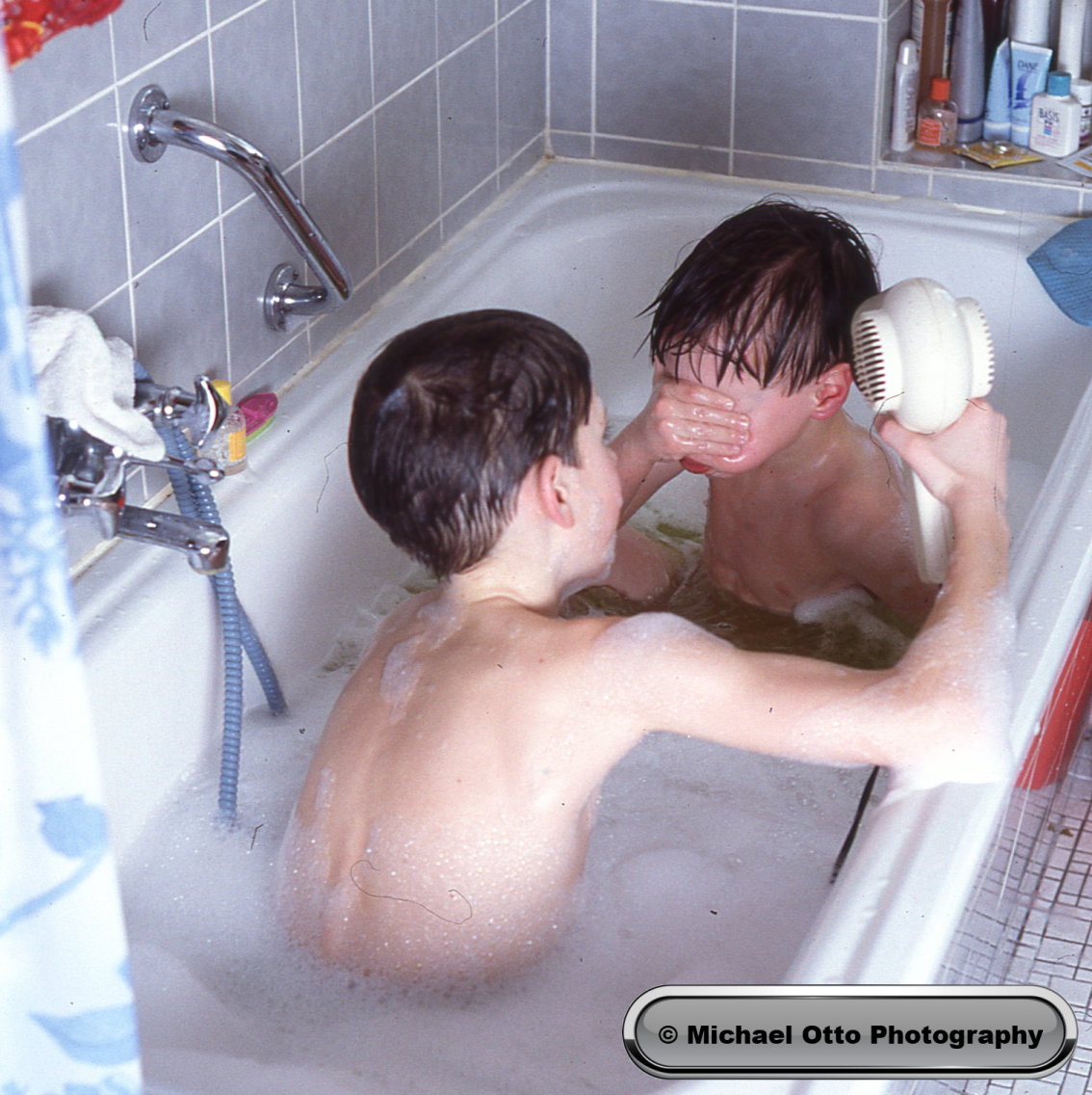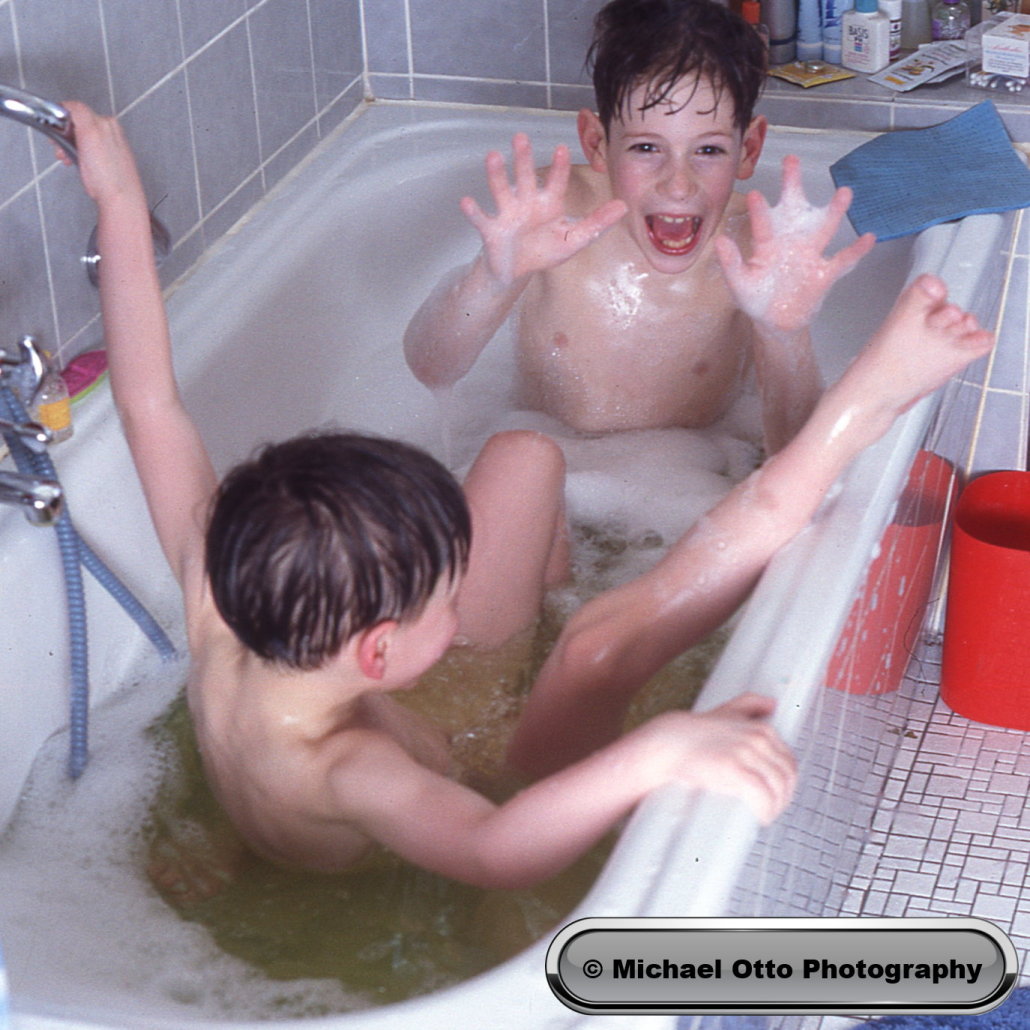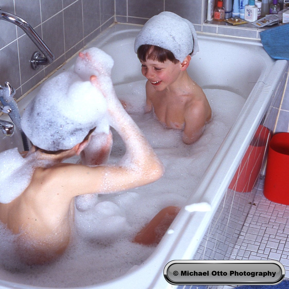 Für mich als Fotografen bestand eine weitere Aufgabe darin, die Aufnahmen so zu gestalten, dass Geschlechtsteile möglichst nicht zu sehen sind - kein Problem, bei und mit dem Schaum. Trotzdem liess es sich nicht immer vermeiden, bei so lebhaften Jungen.