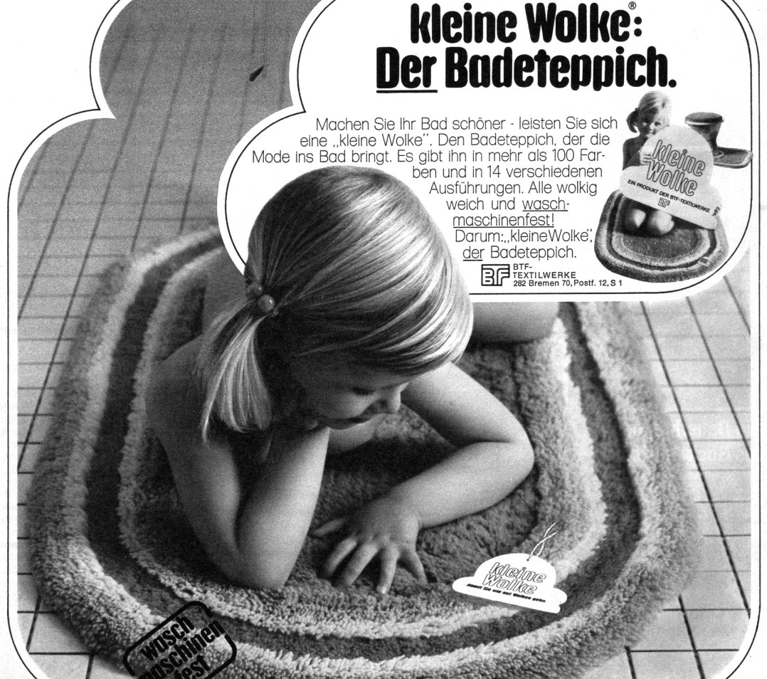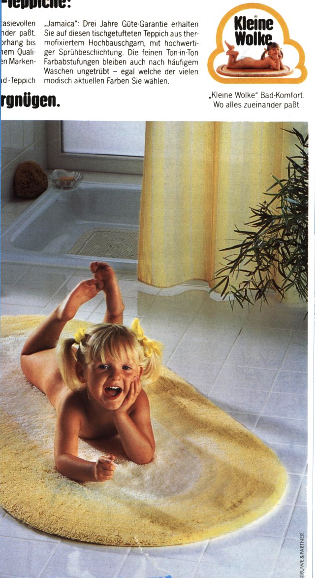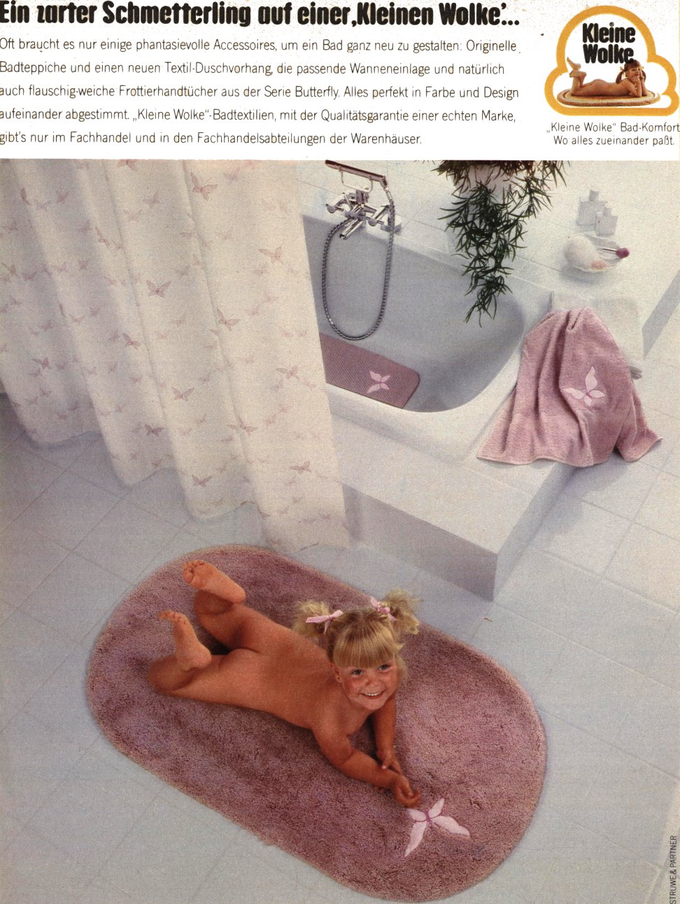Das kleine nackte Mädchen, welches bäuchlings da so auf einer kuscheligen Badezimmermatte liegt ... wir kennen es doch alle (zumindest die älteren Generationen), sind wir ihr doch über Jahrzehnte öfters begegnet. Sei es im Sanitär-Fachhandel, in Kaufhäusern, Katalogen oder übergroß auf Verbrauchermessen. Auf und an jedem Produkt war das Mädchen in Form eines kleinen Papp-Schildes präsent.