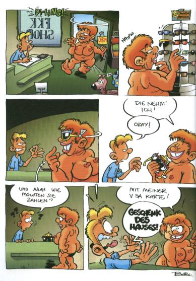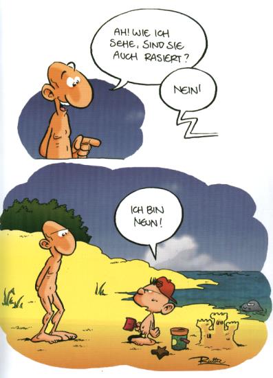 Neben dieser »Situationscomic« findet man in vielen Bildern bekanntes vor, was man nicht unbedingt im Zusammenhang mit der Freikörperkultur kennt (Filme, Werbung), jedoch wunderbar umgesetzt.