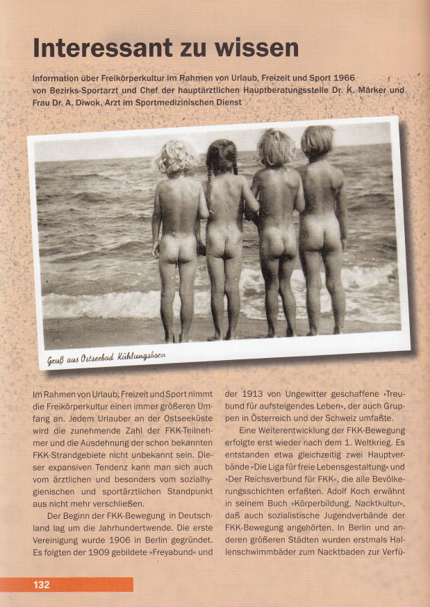 | Klappentext: Urlaubszeit, schönste Zeit, das wußte auch der DDR-Bürger, und so mancher genoß die schönen Tage am liebsten so, wie Gott ihn geschaffen hatte. 80% der Familien hatten FKK-Erfahrung, sagen die Statistiker. Was sind schon Zahlen? Dieses Buch zeigt das fröhliche nackte Leben an den FKK-Stränden die Ostsee rauf und runter und das »Baden ohne« an Baggerseen oder Steinbrüchen. Es erinnert an eine zumindest in textiler Hinsicht unbeschwerte Freizeit. Ein Buch, für das Hobbyfotografen ihre Archive geöffnet haben. |