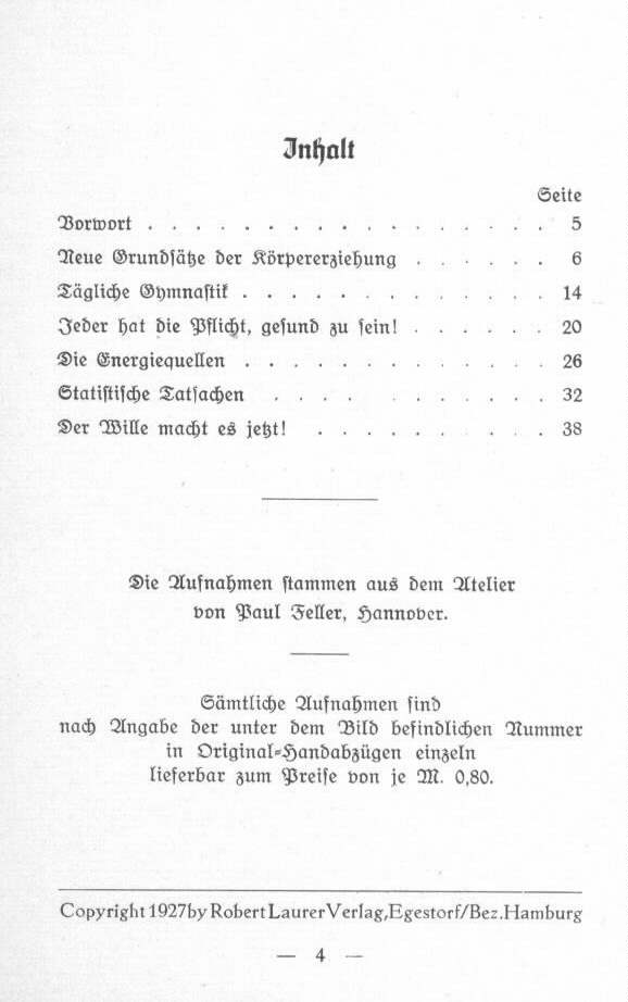 Taschenbuch mit 32 Übungsbildern - Aufnahmen aus dem Studio und im Freien. Sportrat Fritz Strube stellt in diesem Büchlein zum größten Teil einfache Gymnastikübungen vor, welche man ohne