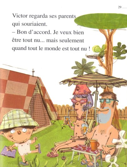 Die Geschichte handelt von dem kleinen Victor, der zum ersten Mal mit seinen Eltern Urlaub auf einem FKK-Campingplatz verbringt. Klar, seine Eltern hat er schon zu Hause nackt gesehen, im Badezimmer - aber nun, die ganzen fremden Menschen, die anderen Männer und Frauen ... und erst die anderen Kinder. Nein, sich selbst auszuziehen, kommt für Victor nicht in Frage, viel zu peinlich ist ihm die Angelegenheit.