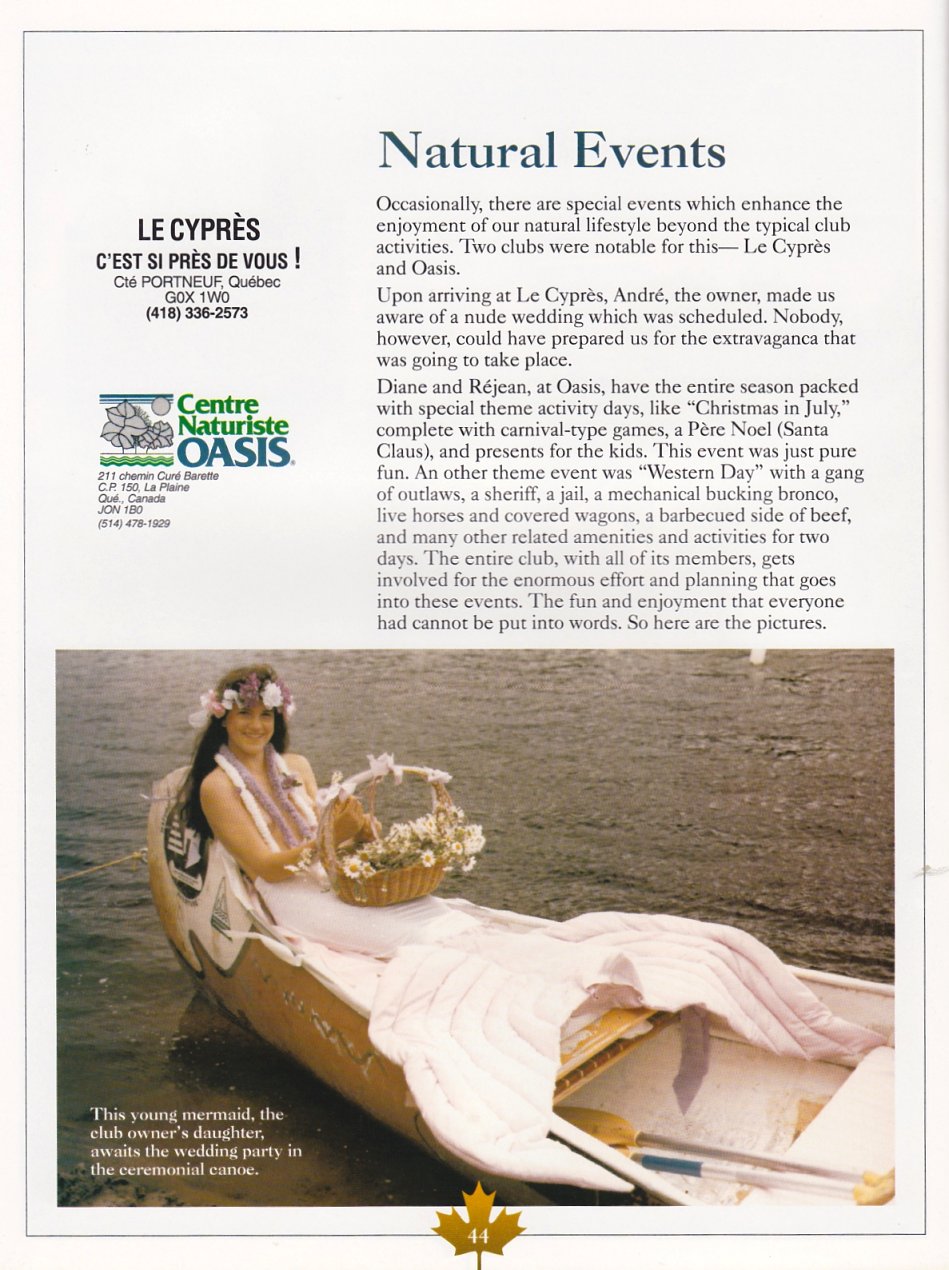 Auf 118 Seiten bringt uns Richard West den Naturismus in Kanada näher, wobei er im wesentlichen die Bilder „sprechen” lässt. Zu jedem Kapitel gibt es eine entsprechende Einleitung - und zu jedem vorgestellten Resort eine Kurzbeschreibung.