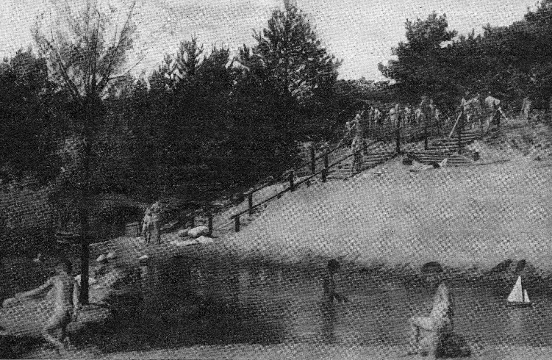 Der See (→ die ehemalige Tongrube) wurde für die Kinder sicher gemacht und der Weg dorthin mit Treppen und Geländer versehen.