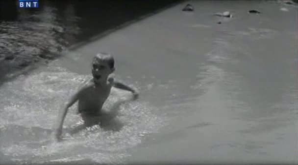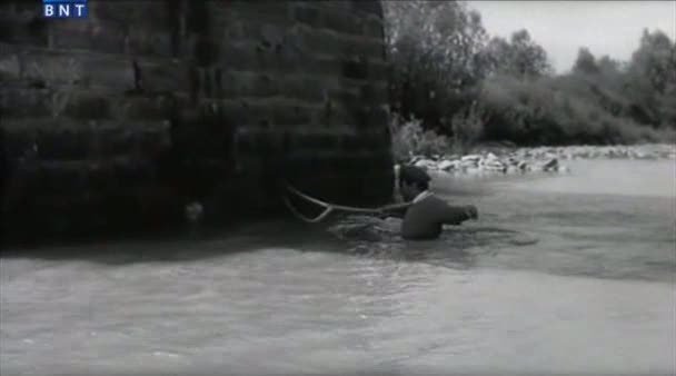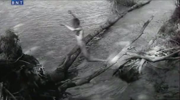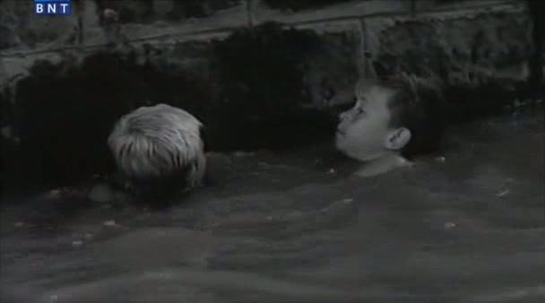 Bei der ganzen Toberei gerät einer der Jungen mit seiner Hand in einen Spalt an der Eisenbahnbrücke - er kann sich nicht befreien, klemmt fest. Auch die Freunde können nicht helfen und es wird noch schlimmer, denn das Wasser steigt.