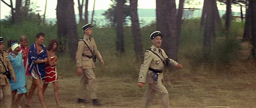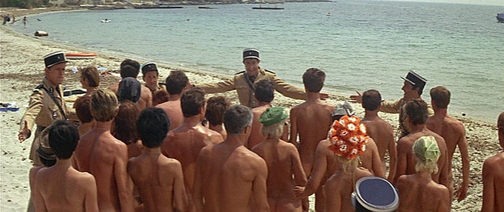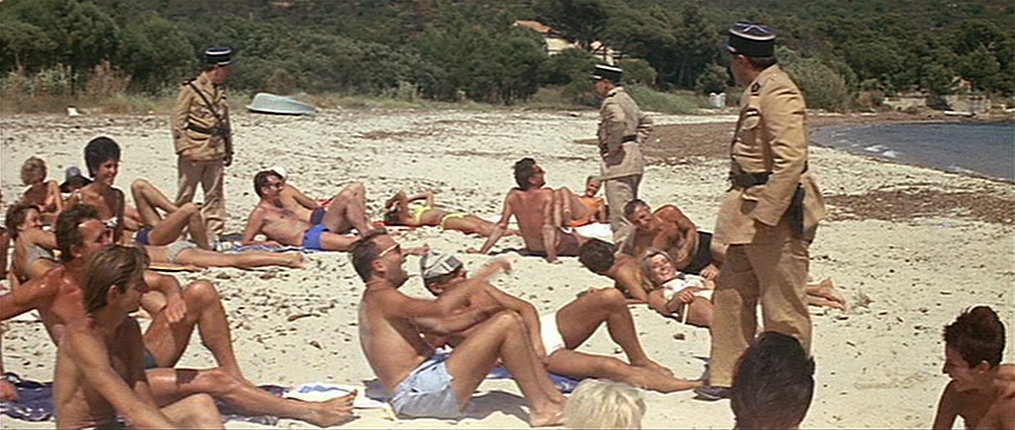 Umschlagtext: Endlich wird es Zucht und Ordnung geben im zügellosen St. Tropez! Der einfache Dorfpolizist Cruchot (Louis de Funès)) wird eines Tages befördert und soll nun knallhart die Moral hüten. Nun geht es den Ganoven an den Kragen, den Falschparkern und Nudisten. Während jedoch Cruchot mit seinen Mannen zur Leibesvisitation am FKK-Strand schreitet, schlägt sein attraktives Töchterchen über die Stränge..