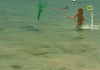 ![]() Sam versucht, einen Stachelrochen zu fangen |