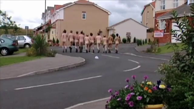 Eine kleine Stadt, irgendwo in Wales. Alles ist „normal”, Kinder spielen auf der Straße, Nachbarn unterhalten sich, ein Eiswagen kommt. Auf einmal hört man aus der Ferne Männergesang („nine naked men, just walking down the road”) und kurz darauf 9 nackte Männer die Straße entlang kommend. Auf einmal herrscht Panik, die Frauen flüchten mit den Kindern in die Häuser. Wie hypnotisiert bleibt ein Mann zunächst draußen stehen und will sich nun ebenfalls ausziehen, wird aber von den Frauen ins Haus gezerrt und dort festgehalten.