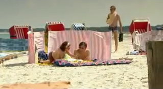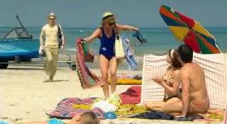 | Nur kurze Szenen am FKK-Strand - nicht alles ganz korrekt, aber wichtiger für diese Fernsehserie sind die politischen Ereignisse in der Heimat, wie hier das Beispiel des „Prager Frühlings” (→ August 1968). |