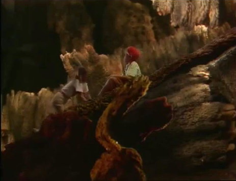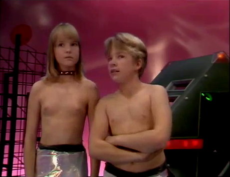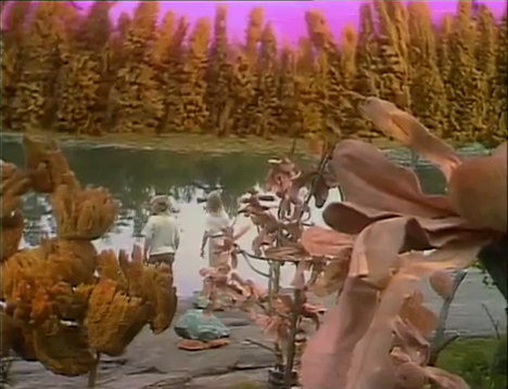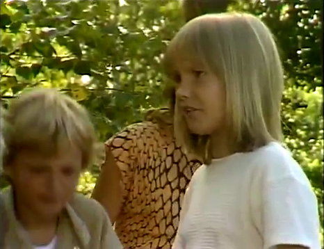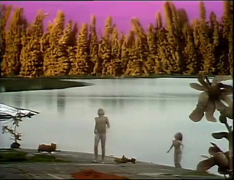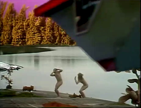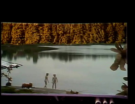 | Auf dem Planeten »Gyllenblå« entdecken Cecilie und Fredrik einen See ... spontan entschliessen die beiden sich, ein Bad zu nehmen. Kurz nach dem Bad werden die beiden Kinder von einer Raum-Patrouille des Präsidenten entdeckt und nackt, wie sie gerade sind, entführt. |