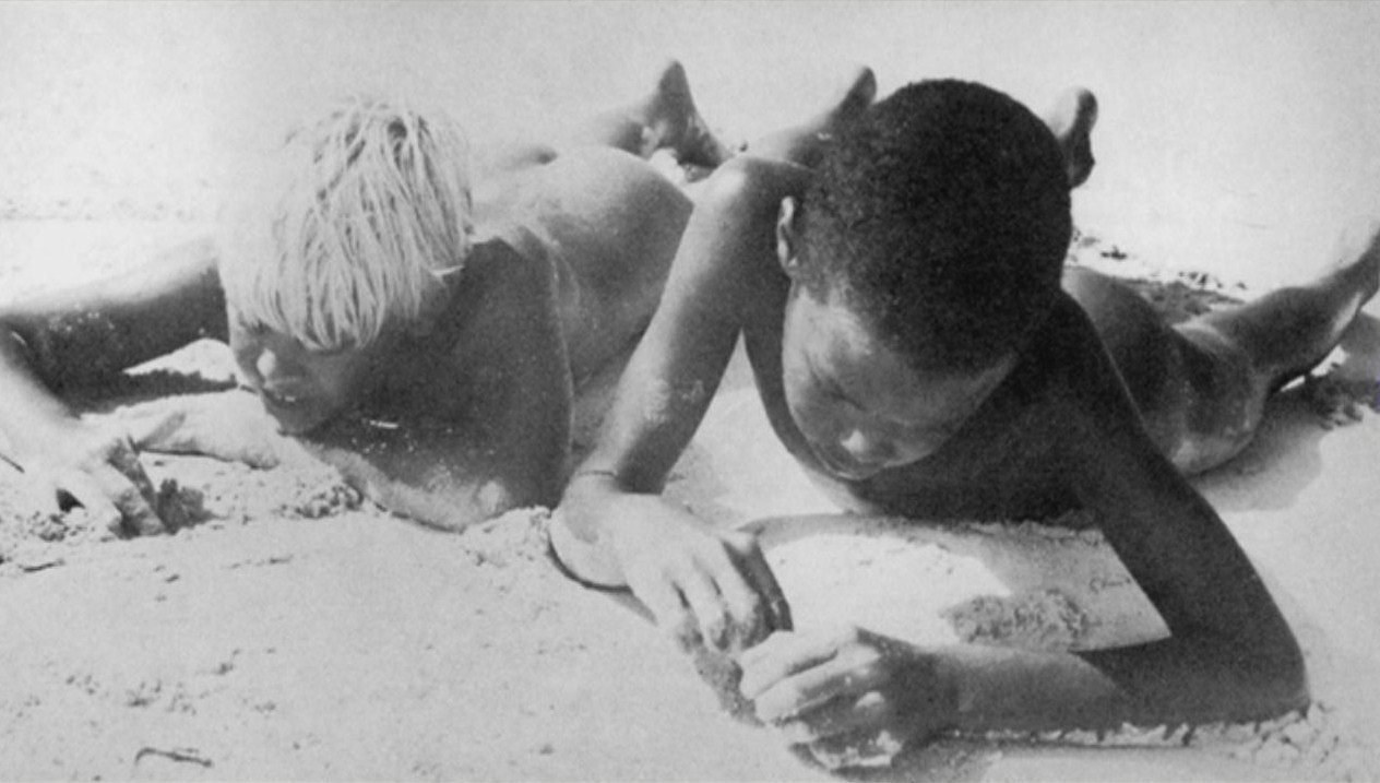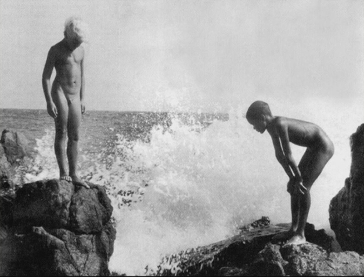 Auch wenn nicht gerade gedreht wurde, tobten die beiden Jungen nackt herum |