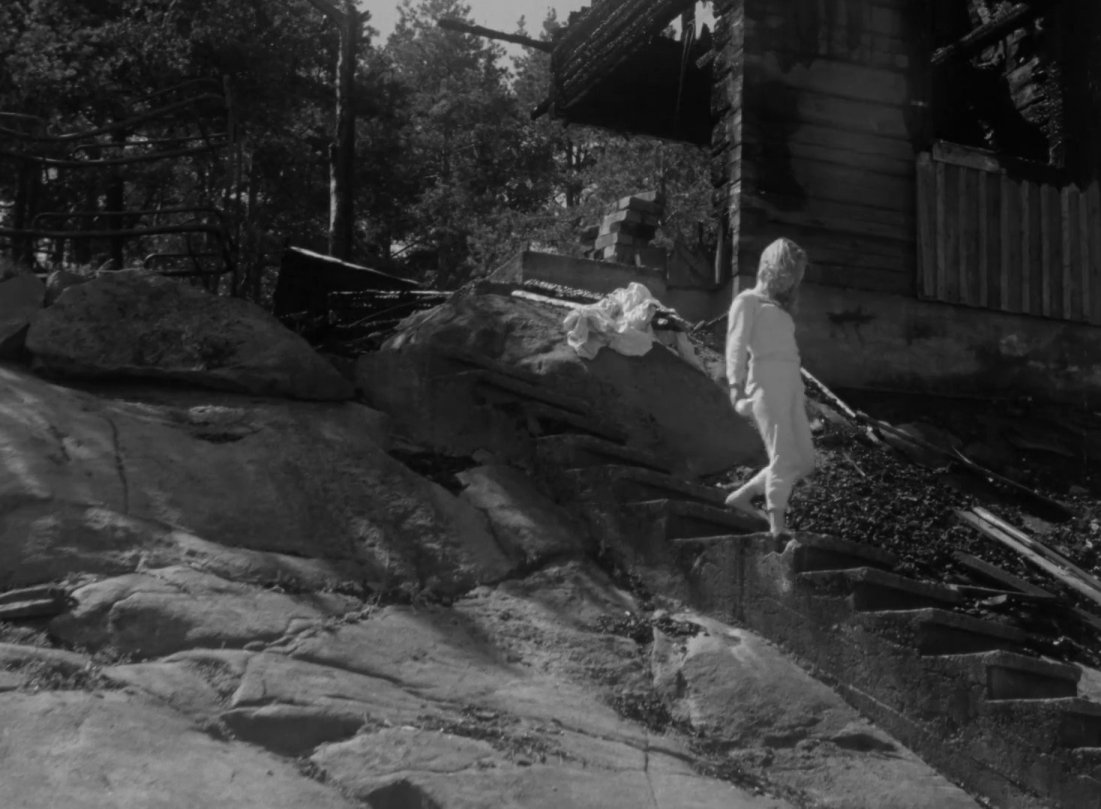 Zwischendurch, auf dem Weg durch die Wälder nutzt sie jede Gelegenheit, um ihren Pyjama, der ihr (neben einer Pfeife) aus der verhängnisvollen Nacht übrig geblieben ist, zu waschen und auch selbst zu baden.