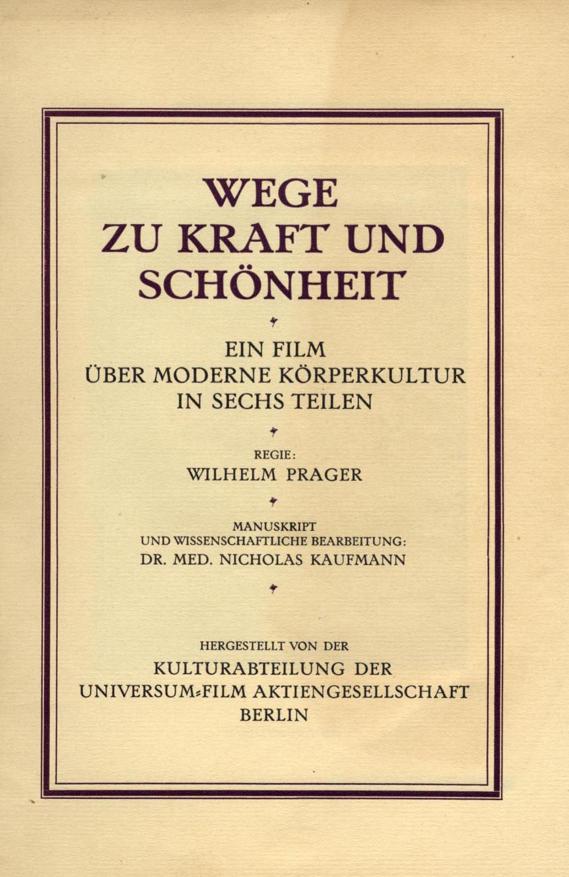 Dr. Nicholas Kaufmann, der in der Kulturfilmabteilung arbeitete, hatte die Idee von einem Kulturfilm, der die Schönheit des menschlichen Körpers verherrlicht und der nackte Männer und Frauen in Szenen aus dem klassischen Altertum zeigt. Szenen aus dem damals modernen Nacktbad, Szenen aus dem Training von Sportlehrern und Leichtathleten und so weiter.