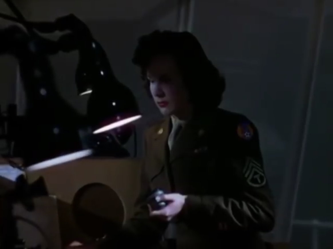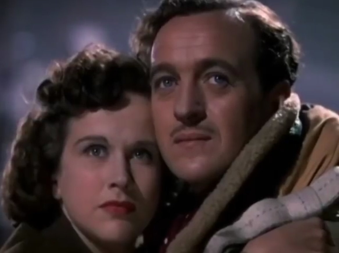 Sein letzter Kontakt zur Außenwelt ist die Stimme der amerikanischen Funkerin June (Kim Hunter), die ihm Mut zuspricht und in die er sich verliebt. Peter überlebt den Absprung ohne Fallschirm wie durch ein Wunder und wird an Land gespült. Auch er selbst kann es zunächst nicht fassen, dass er überlebt hat. Wenig später begegnet er June und die beiden werden schnell ein Paar.