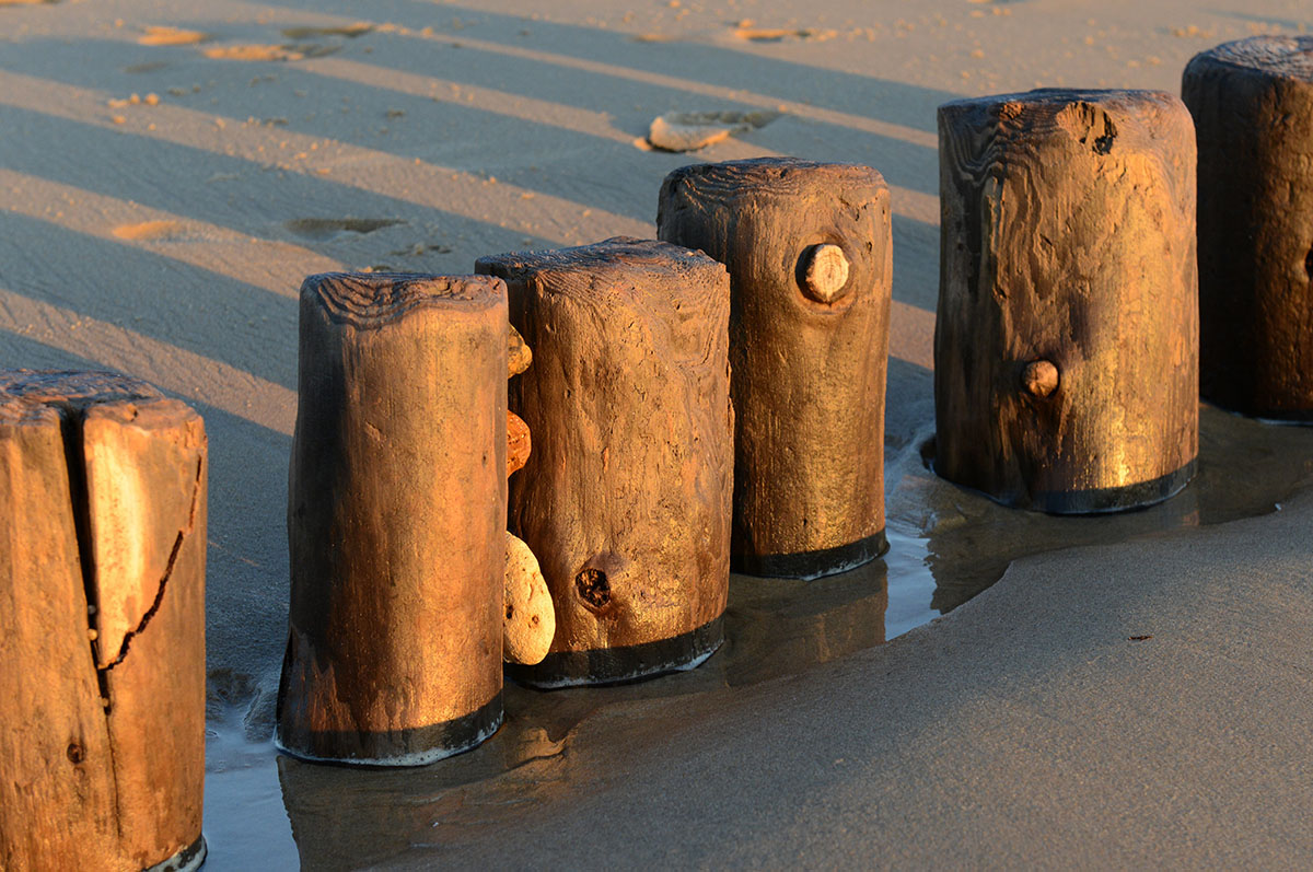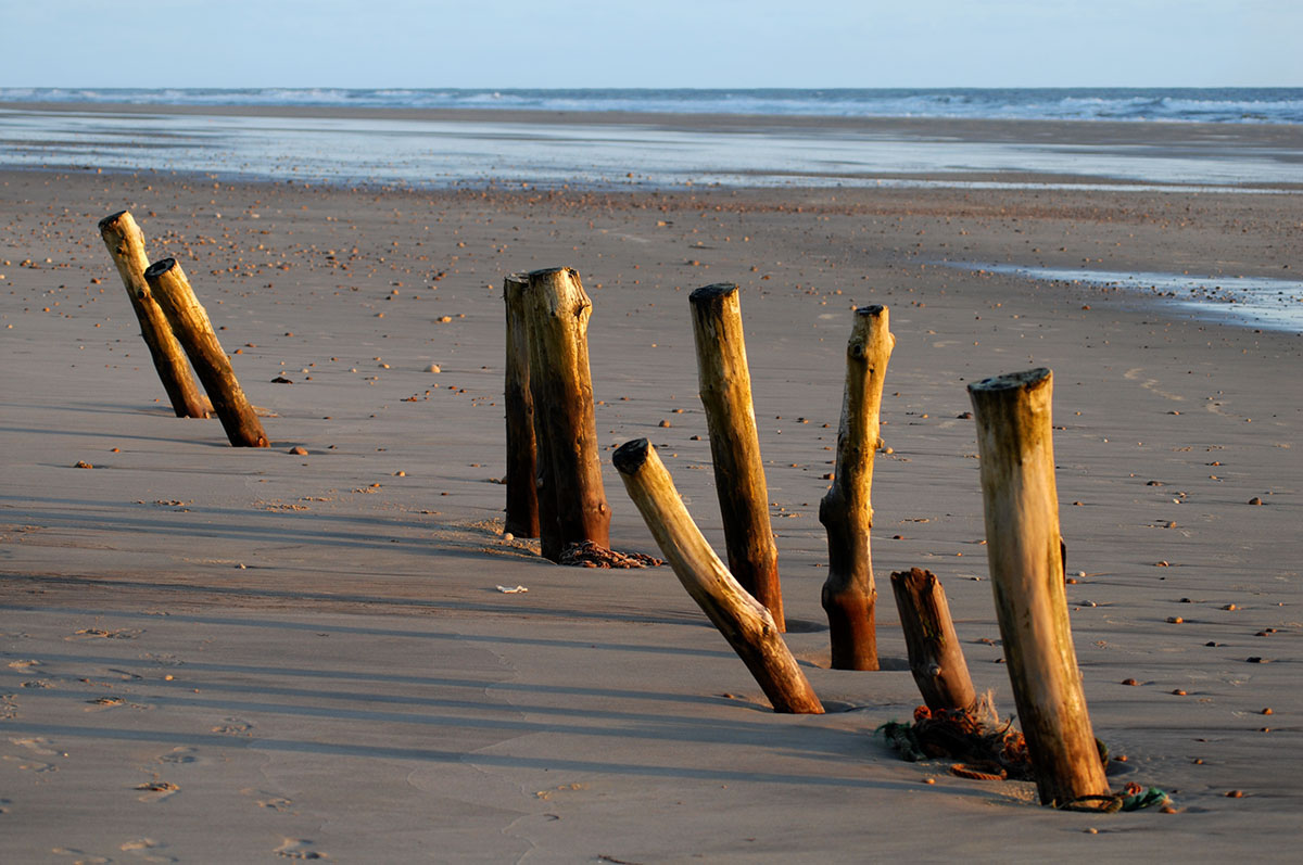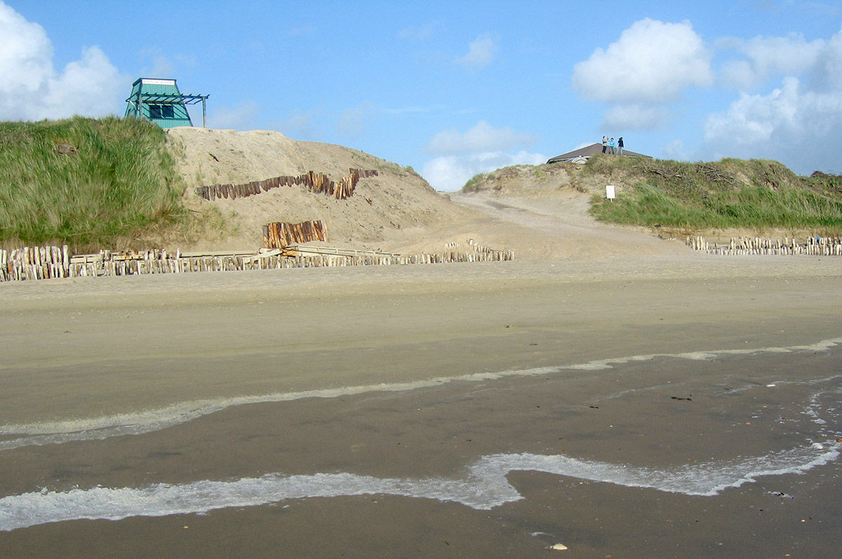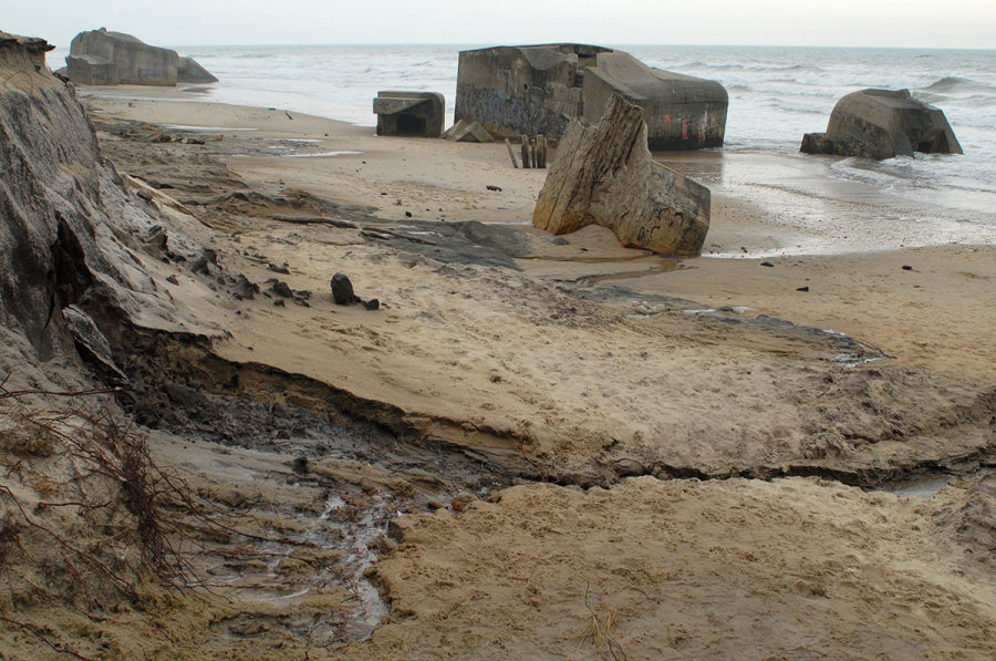 Ursprünglich standen die Bunker oben auf den Dünen, rutschten aber im Laufe der Jahre zum Strand hinunter, wo sie auch heute noch stehen, bzw. liegen und dem Zahn der Zeit, den Naturgewalten, aus- gesetzt sind. Alle Maßnahmen, die Bunker hier zu beseitigen schlugen fehl und man beließ sie einfach an Ort und Stelle.