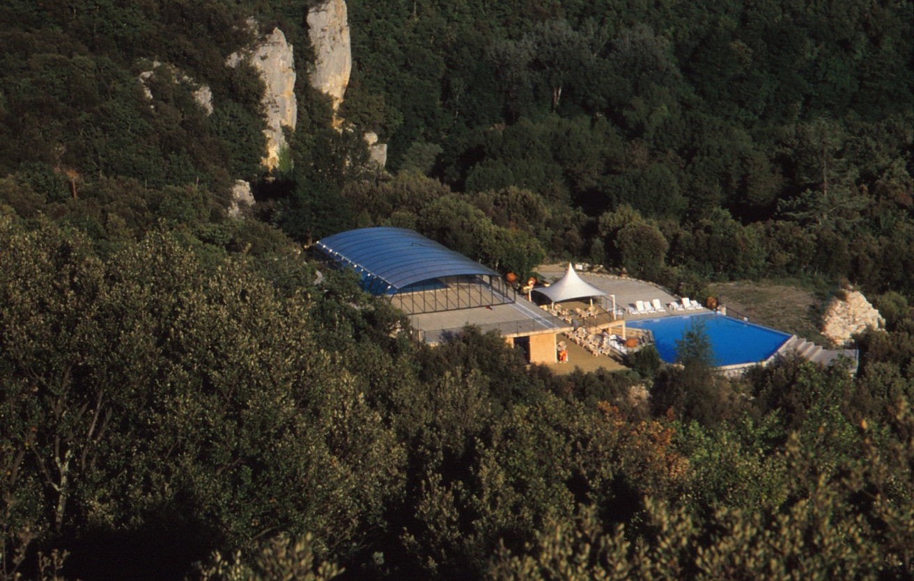Dieser Teil liegt ca. 700 Meter von der Cèze entfernt. In einer Höhe von 100 Metern gibt es 3 Pools (einer davon bei kühleren Temperaturen beheizt und ein Kinderbeken). In der unmittelbarer Nähe der Pools befindet sich die Bar „Eden-Roc”.