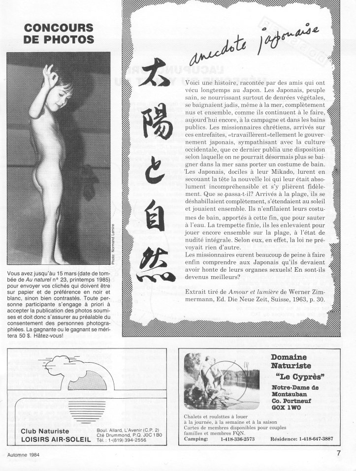 au naturelBulletin de la Fédération Québécoise de NaturismeKanadaVol. 3 • Nº 4 Herbst 1984 |