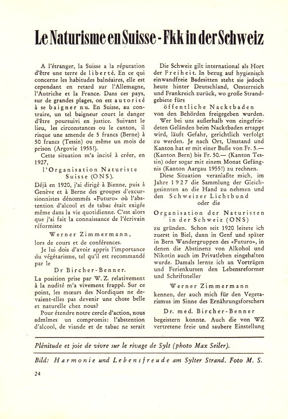 die neue zeit✷ Reiseführer ✷Ile du Levant Sylt FKK in der Schweiz Le Naturisme en Suisse |