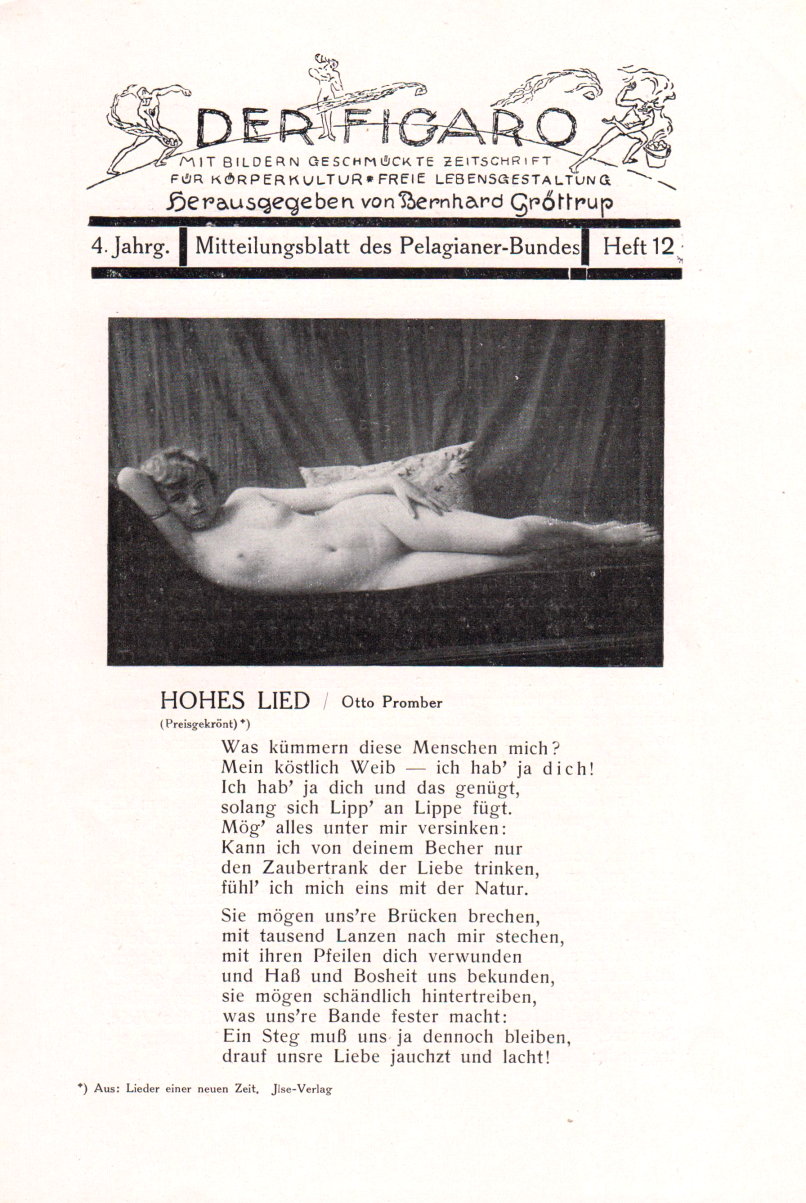 FIGAROMit Bildern geschmückte Zeitschriftfür Körperkultur und freie Lebensgestaltung Mitteilungsblatt des Pelagianer-Bundes Heft 12 • IV. Jahrgang Juni - 1927 |