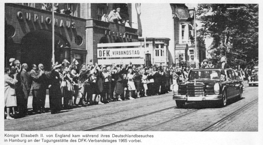 Titelbild: Plastik in „Planten und Blomen” in Hamburg Bild von dem Fahrzeug-Konvoi der Königin Elisabeth II., wie sie während ihres Deutschlandbesuches an der Tagungsstätte (Curio-Haus in der Rothenbaumchaussee) des DFK-Verbandstages vorbei fährt. → Bild |
