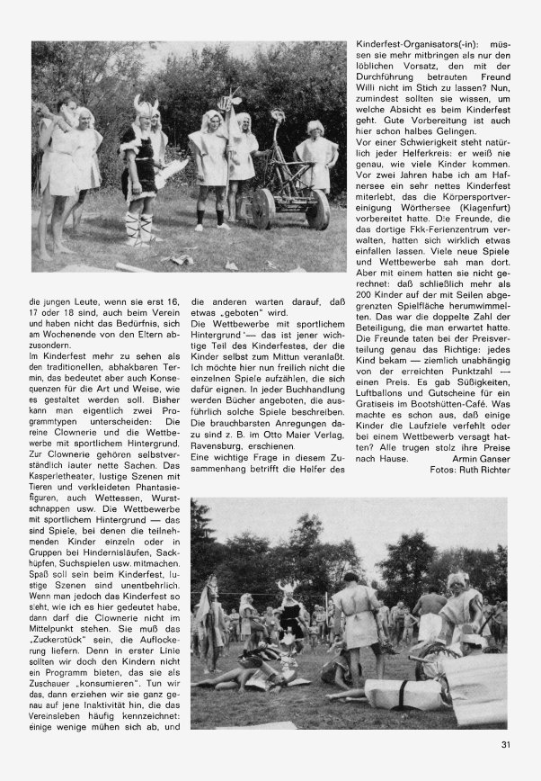 Das Kinderfest - nur ein großer Spaß für Kleine ? Ein Kinderfest ist nicht nur ein Vergnügen für die Kleinen - nein, auch die Erwachsenen können ordentlich mitfeiern, wie dieser Bericht von Armin Ganser recht deutlich beweist: → 1. Seite → 2. Seite |