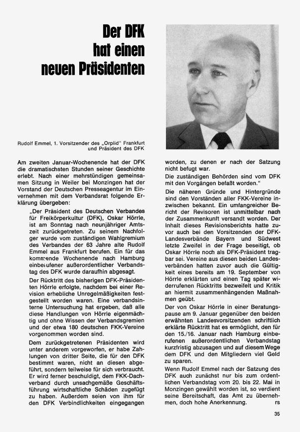 Rudolf Emmel ... übernimmt nach dem Rücktritt von Oskar Hörrle kommissarisch das Amt des DFK-Präsidenten. |