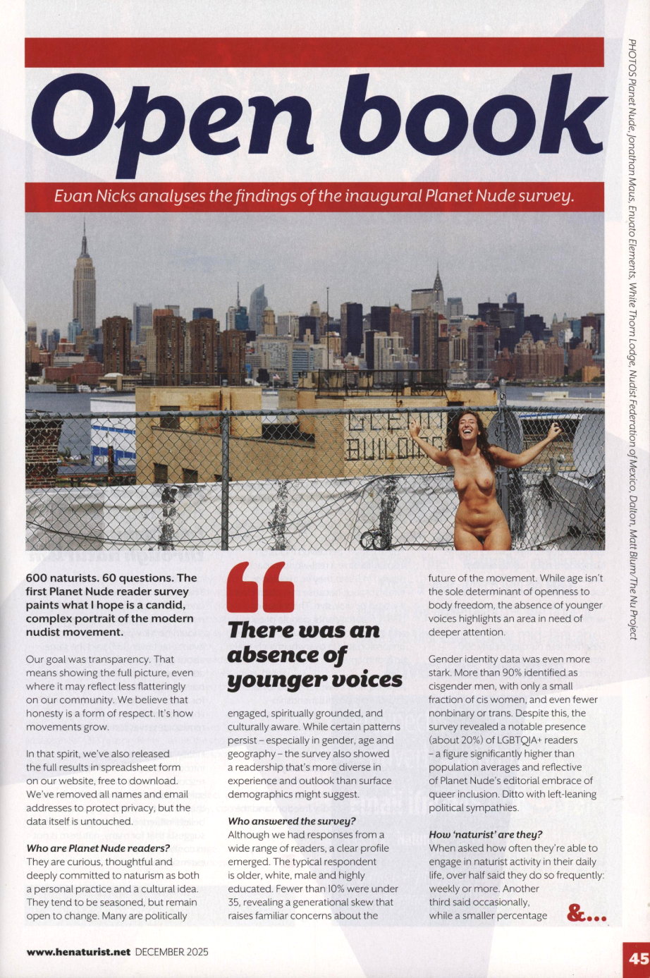 | In der Rubrik „Focus on France” beschreibt der Autor Julien Claudé-Pénégry das ➤ Projet Symbiose. Körpermalerei und Aktfotografie in der Natur. Der Titel „Blank canvas” bedeutet sowohl „leere”, als auch „nackte” Leinwand. |