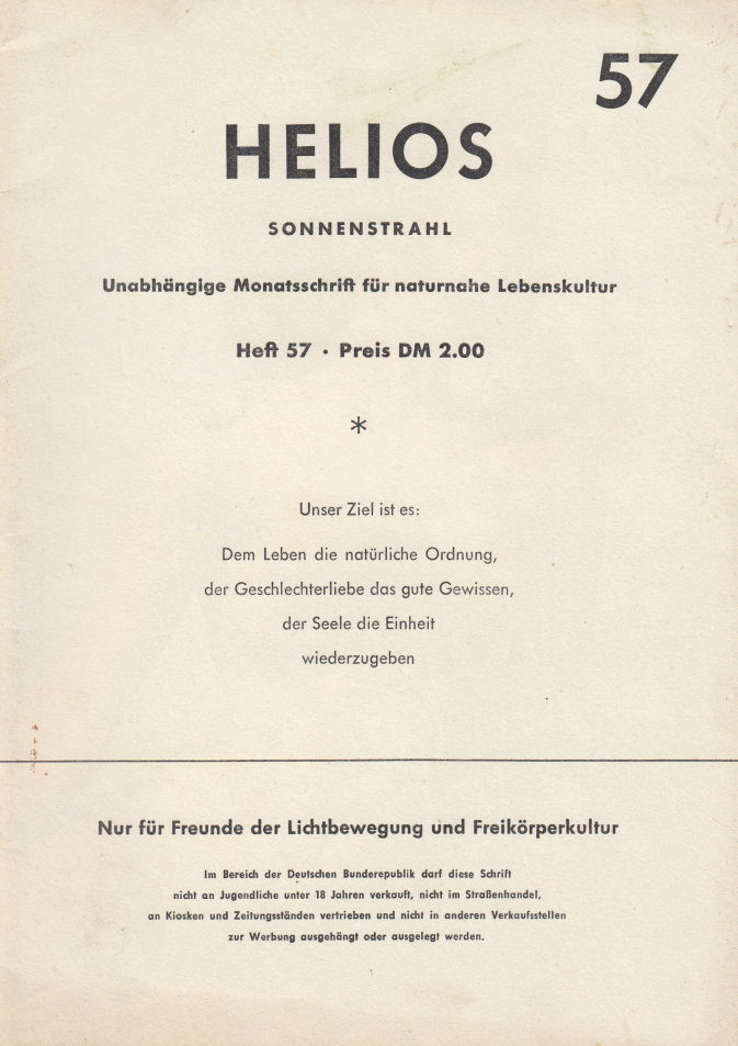 HELIOSSonnenstrahlUnabhängige Monatsschrift für naturnahe Lebenskultur Heft 57 • September 1955 |