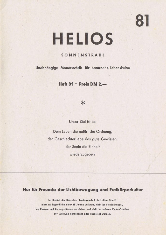 HELIOSSonnenstrahl • Geist und GestaltUnabhängige Monatsschrift für naturnahe Lebenskultur Heft 81 • September 1957 |