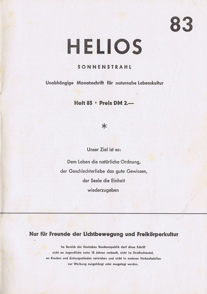 HELIOSSonnenstrahl • Geist und GestaltUnabhängige Monatsschrift für naturnahe Lebenskultur Heft 83 • November 1957 |