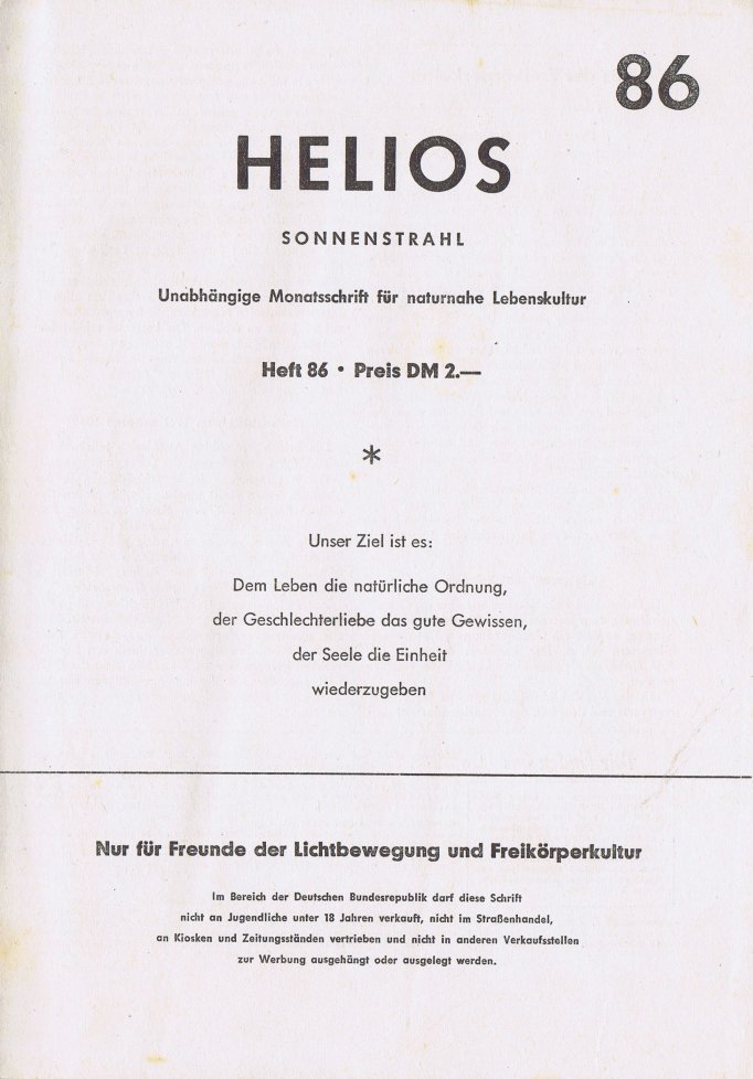 HELIOSSonnenstrahl • Geist und GestaltUnabhängige Monatsschrift für naturnahe Lebenskultur Heft 86 • Februar 1958 |