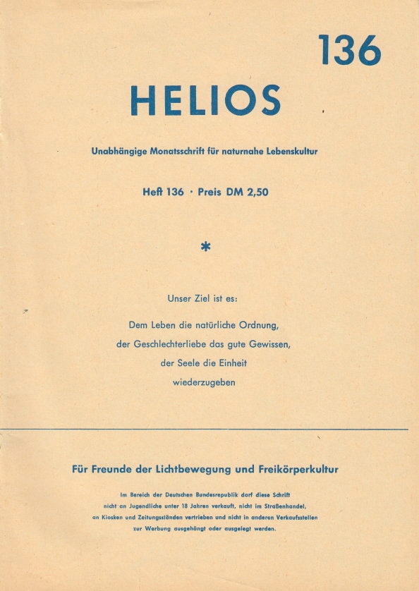 HELIOSUnabhängige Monatsschrift für naturnahe LebenskulturHeft 136 • April / Mai 1962 Doppelausgabe |