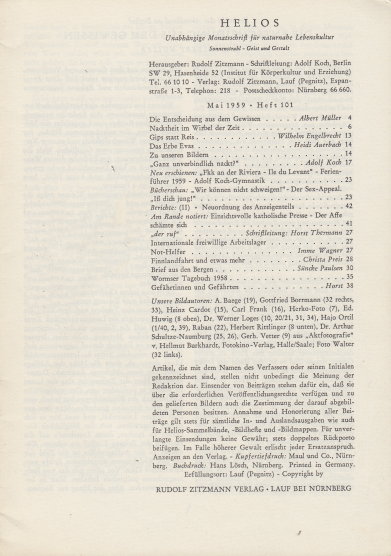 Die Zeitschrift HELIOS erschien von 1951 bis 1965.