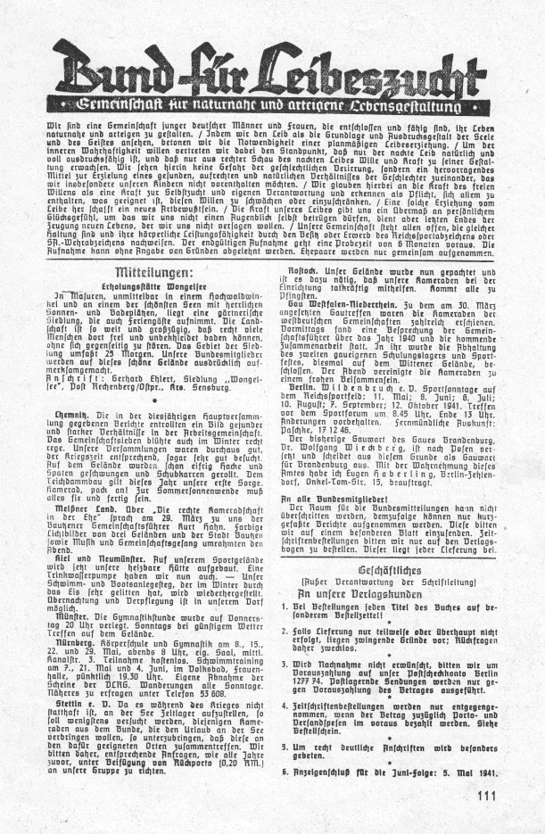 Deutsche LeibeszuchtBlätter für naturnahe und arteigene LebensgestaltungHeft 5 • IX. Jahrgang Mai 1941 |