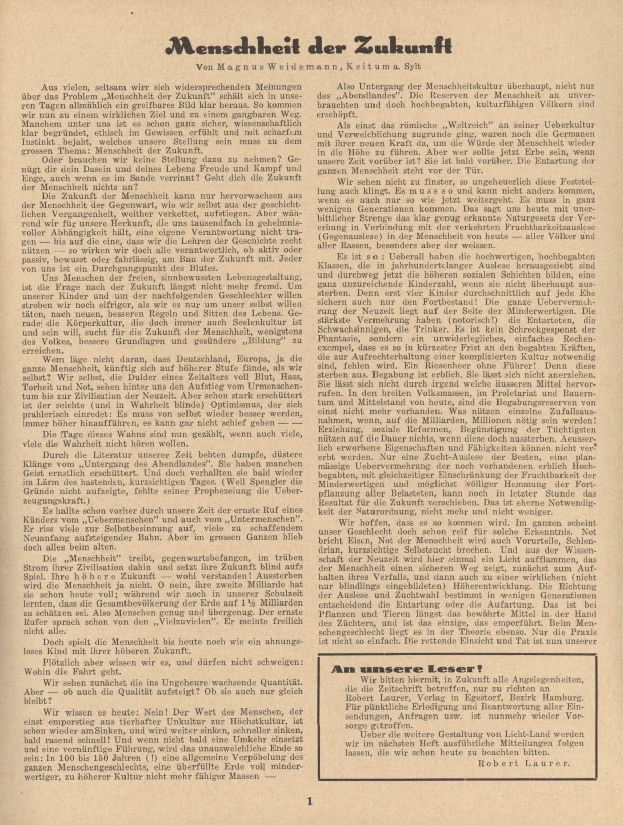 Licht-LandOffizielles Organ der Liga für freie LebensgestaltungIllustrierte Blätter für Körperkultur und Lebenserneuerung VII. Jahrgang • Ausgabe 3 1. Februar 1930 |