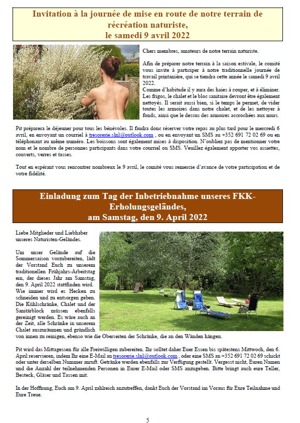 Sports et Loisirs NaturistesLuxemburgAusgabe 275 Januar - Februar - März 2022 |