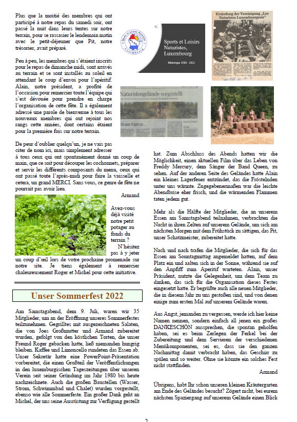 Sports et Loisirs NaturistesLuxemburgAusgabe 278 August - September - Oktober 2022 |