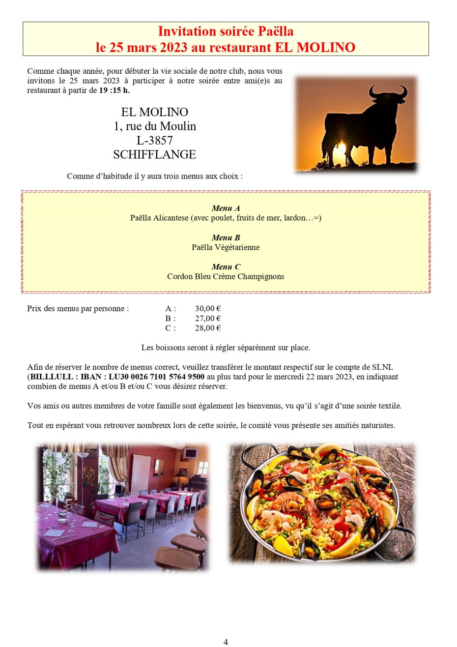 - Invitation soirée le 25 mars au restaurant EL MOLINO